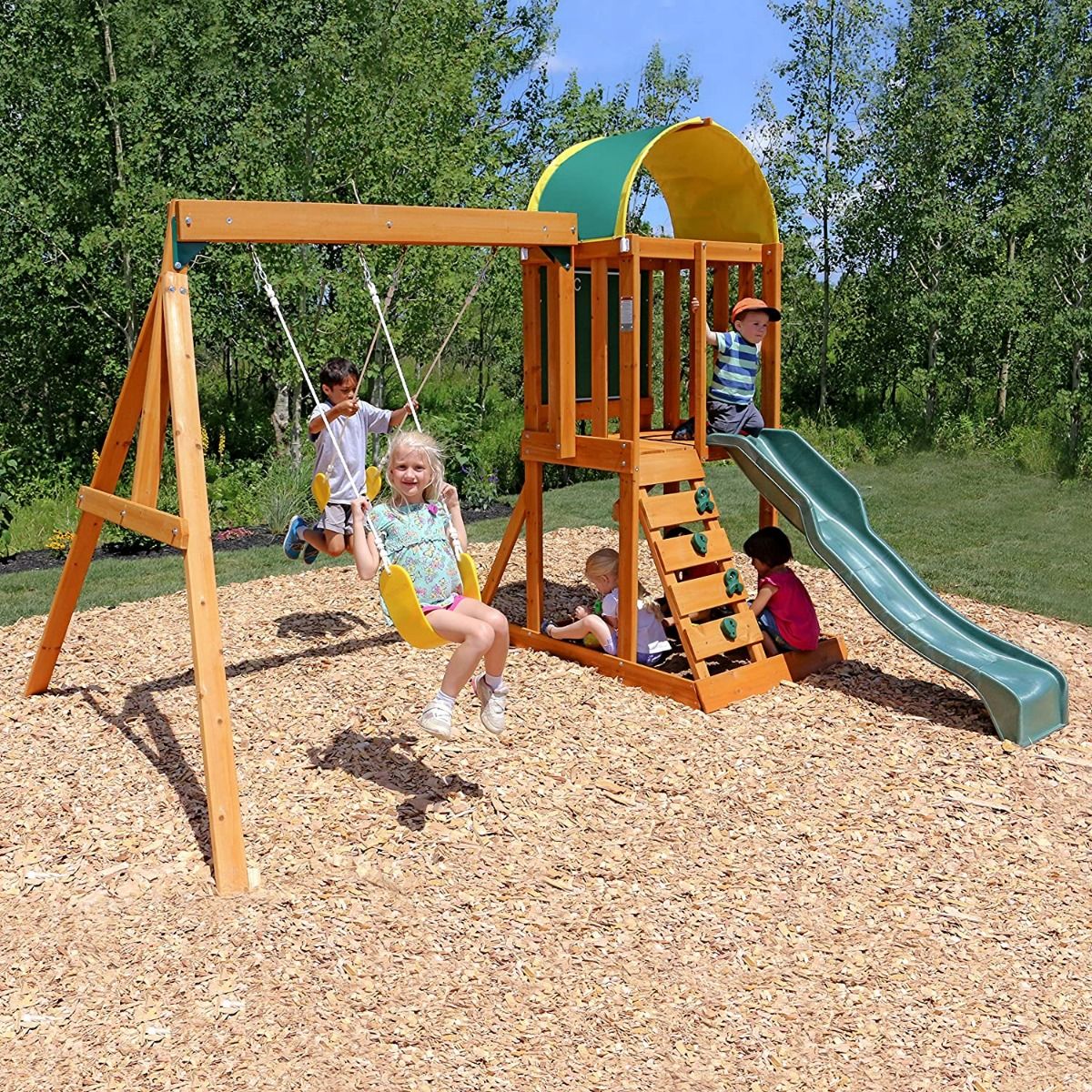 Rendi magico il momento del gioco con il set di strutture da arrampicata Ainsley, dove arrampicarsi, dondolarsi, scivolare e avventure nella sabbiera si uniscono per ore di divertimento!